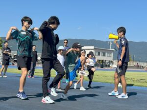 本日、10月4日(土)が最終の練習回となり、夏のような陽気の中で動きづくりや100m走に挑戦しました。